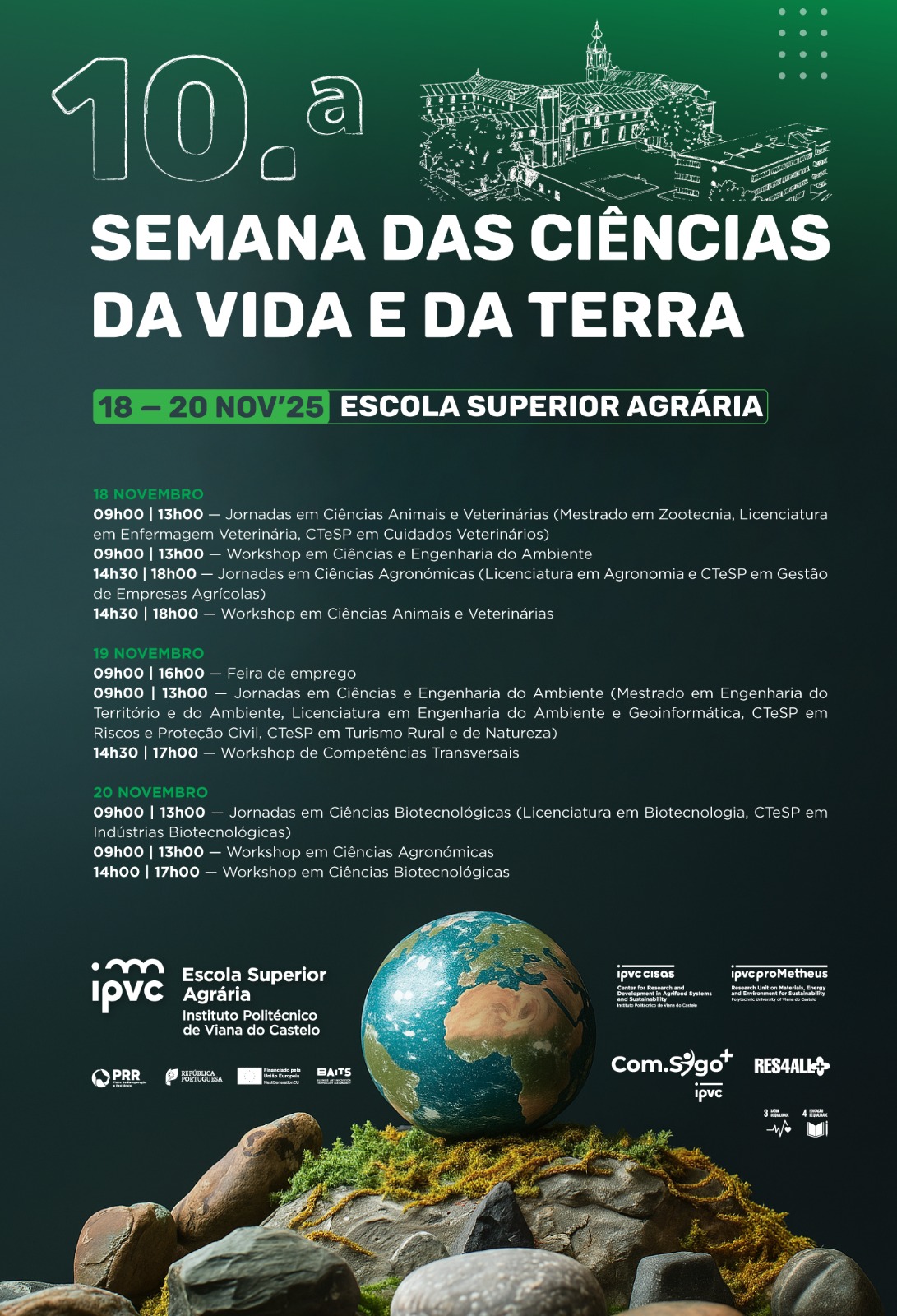 A 10ª Semana das Ciências da Vida e da Terra | Terra.ECO vai decorrer na Escola Superior Agrária do Instituto Politécnico de Viana do Castelo, de 18 a 20 de novembro de 2025.
