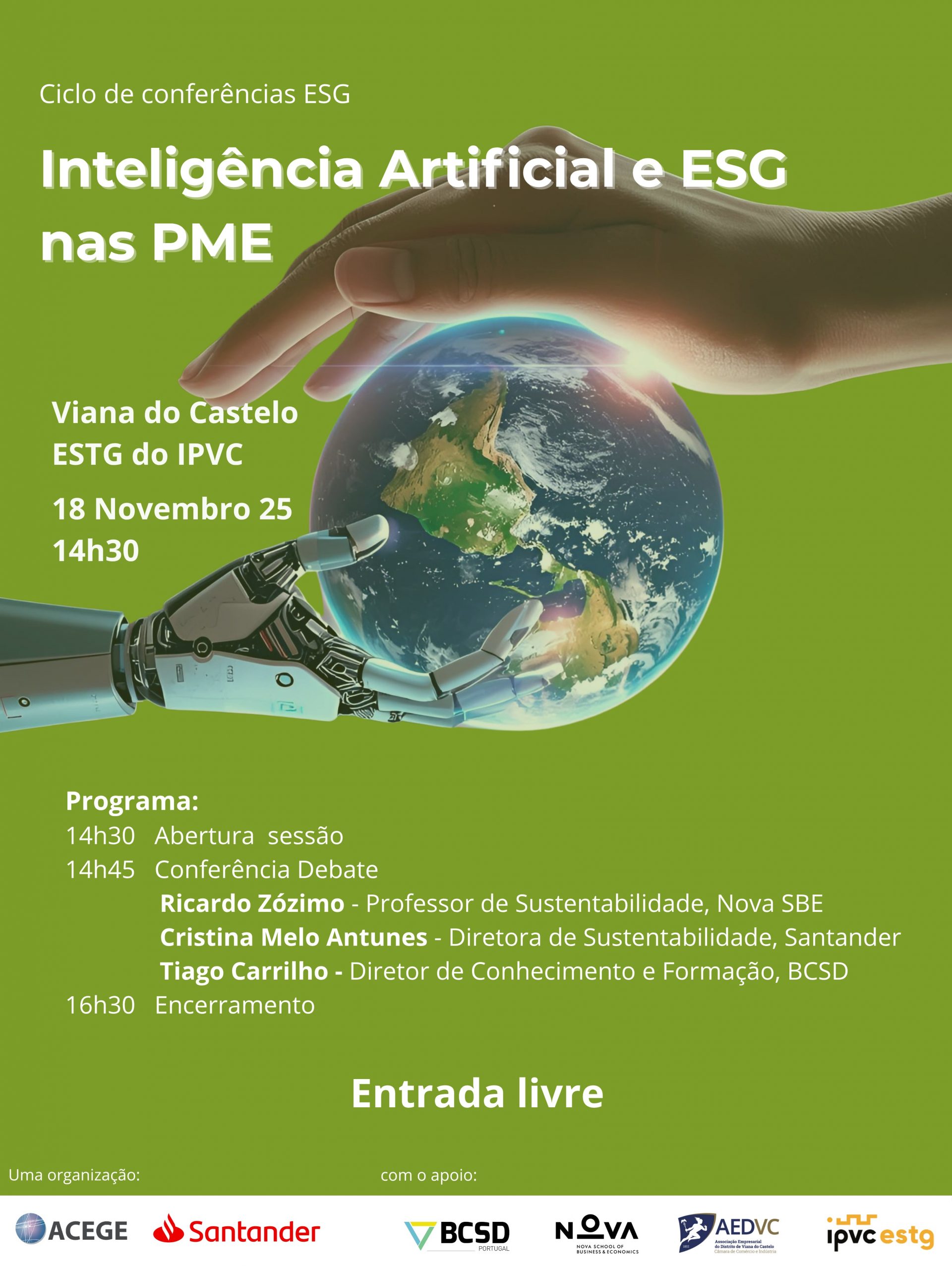 A iniciativa integra o Ciclo Nacional de Conferências ESG, promovido pela ACEGE – Associação Cristã de Empresários e Gestores, em parceria com o Banco Santander e o BCSD Portugal – Conselho Empresarial para o Desenvolvimento Sustentável. Este ciclo, que passa por 10 cidades portuguesas ao longo do mês de novembro, é subordinado ao tema “Inteligência Artificial e ESG nas Pequenas e Médias Empresas”.